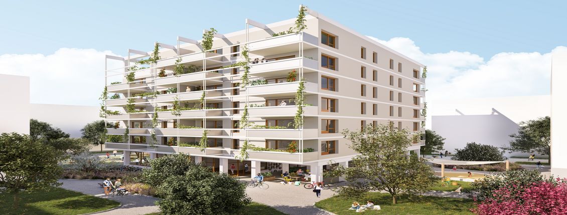 Einen weiteren Mehrwert stellen die großzügigen privaten Balkone jeder Wohnung dar. Die vorgelagerten Pflanztröge in Kombination mit Rankgerüsten schaffen ein angenehmes Wohnklima.